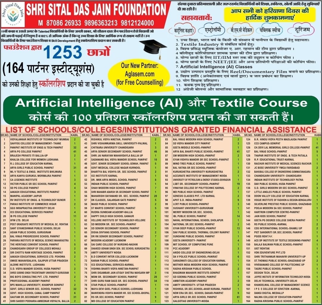 I have spent my last 3 decades, on an individual level, spotting talented gems among the economically weaker section. I have had some satisfaction observing several such spottings to bloom, which otherwise would have been largely lost to oblivion. Simultaneous to this satisfaction, I also realized the limitations of such a search on a personal basis. To overcome this limitation, the SSDJ Foundation came into being. The Foundation depends purely on the family’s own contribution which is designed to last in perpetuity. To maintain focus & to have a visible impact, the Foundation tries to limit its services in the geography of Panipat.