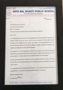 I hope this letter finds you well. I am writing to extend my sincerest gratitude to each of you for the generous financial support you have provided, enabling me to continue my studies in the Bachelor of Engineering (BE) in Computer Science and Engineering (Artificial Intelligence) at Chitkara University. With your support, I was able to focus wholeheartedly on my studies, and I am pleased to share that I have achieved a CGPA of 9.7 in my first year. Your assistance in covering my second-year fees has lifted a significant burden from my shoulders, allowing me to focus wholeheartedly on my studies without the strain of financial stress.